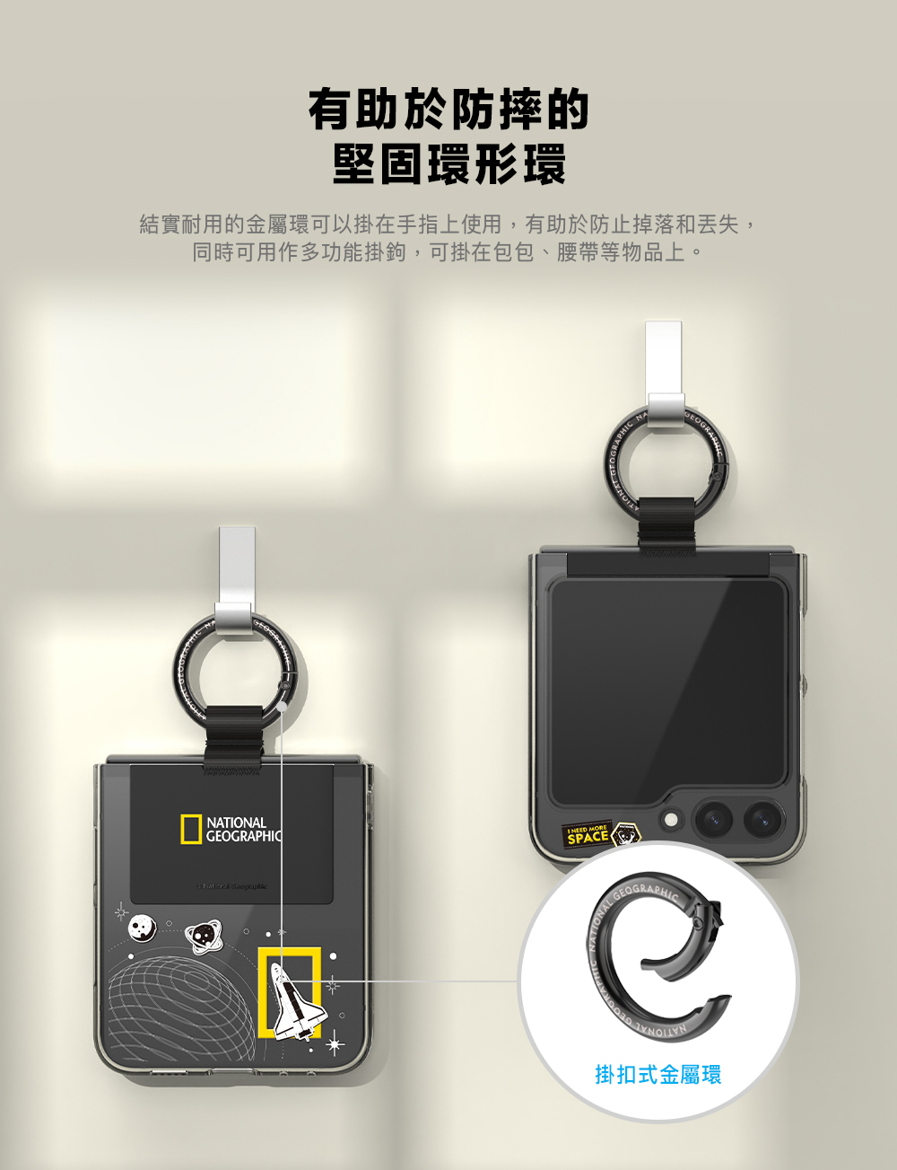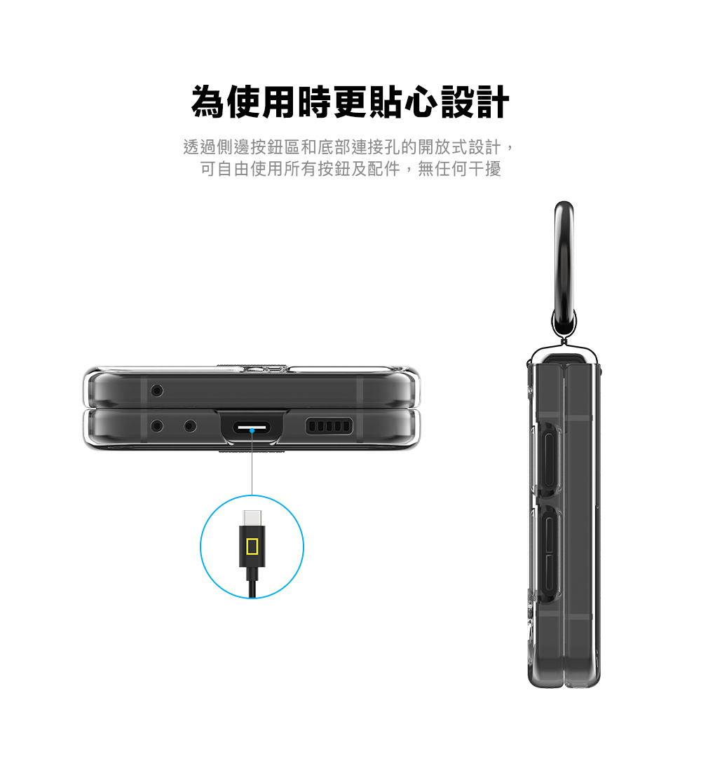 • 透明的手機殼展現手機原色,加入防摔金屬環以提高便利性,可用作多功能掛鉤,掛在包包、腰帶等物品上