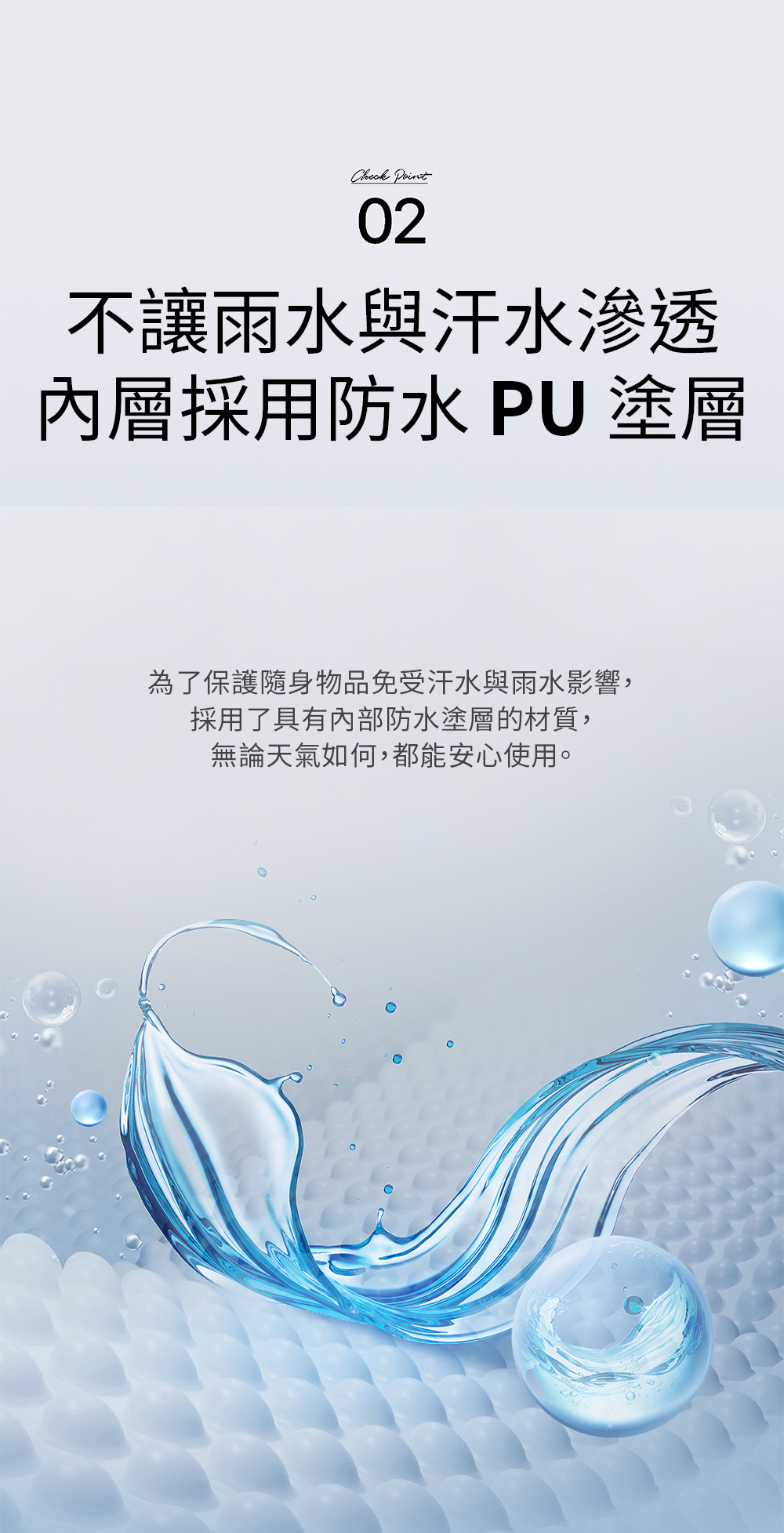 • 防水PU塗層 避免雨水汗水滲透