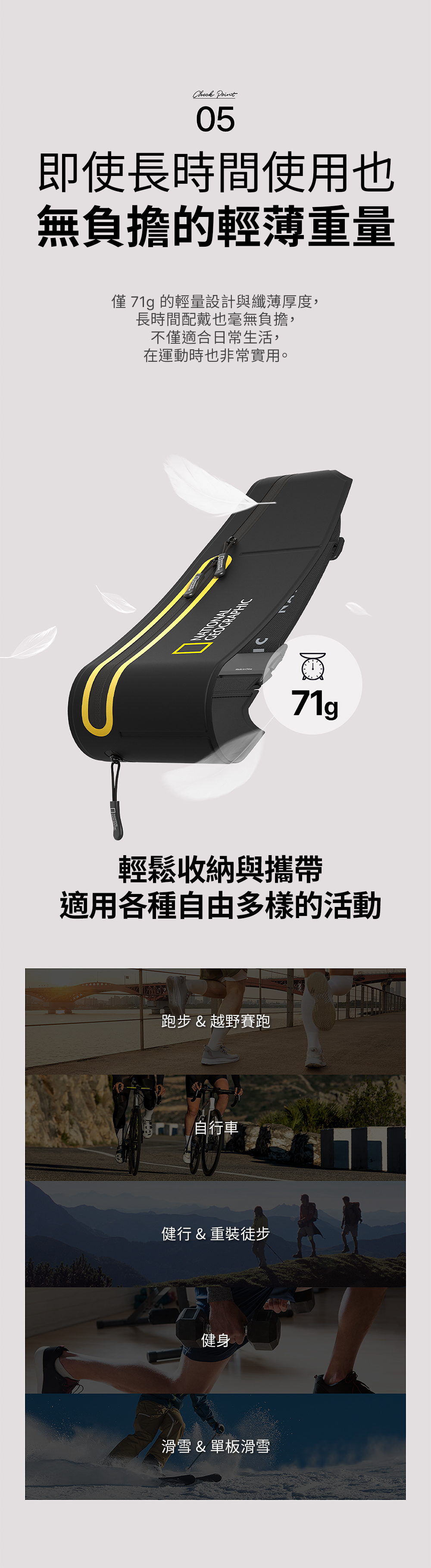 • 多功能戶外用途,適合露營、划船、游泳、跑步、滑雪等戶外活動,通通沒問題!