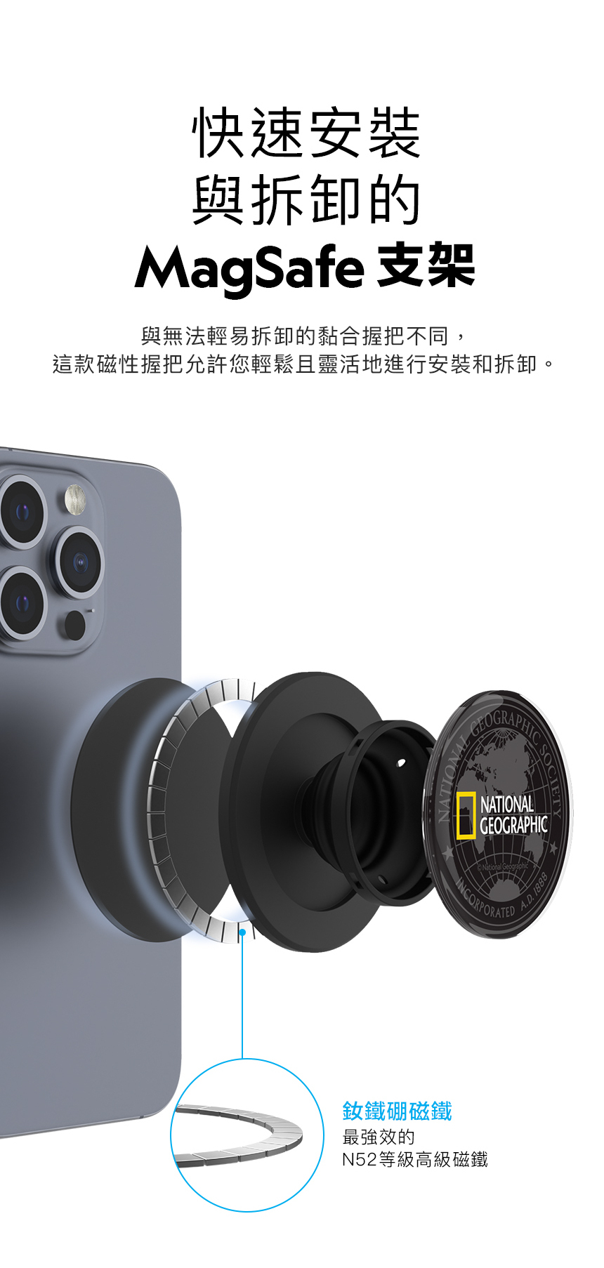 • 可吸附到兼容 MagSafe 的 iPhone 和手機殼