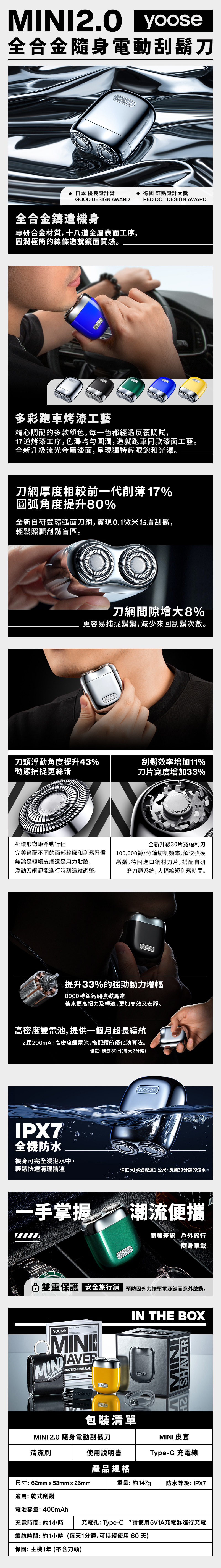 • IPX7 全身防水