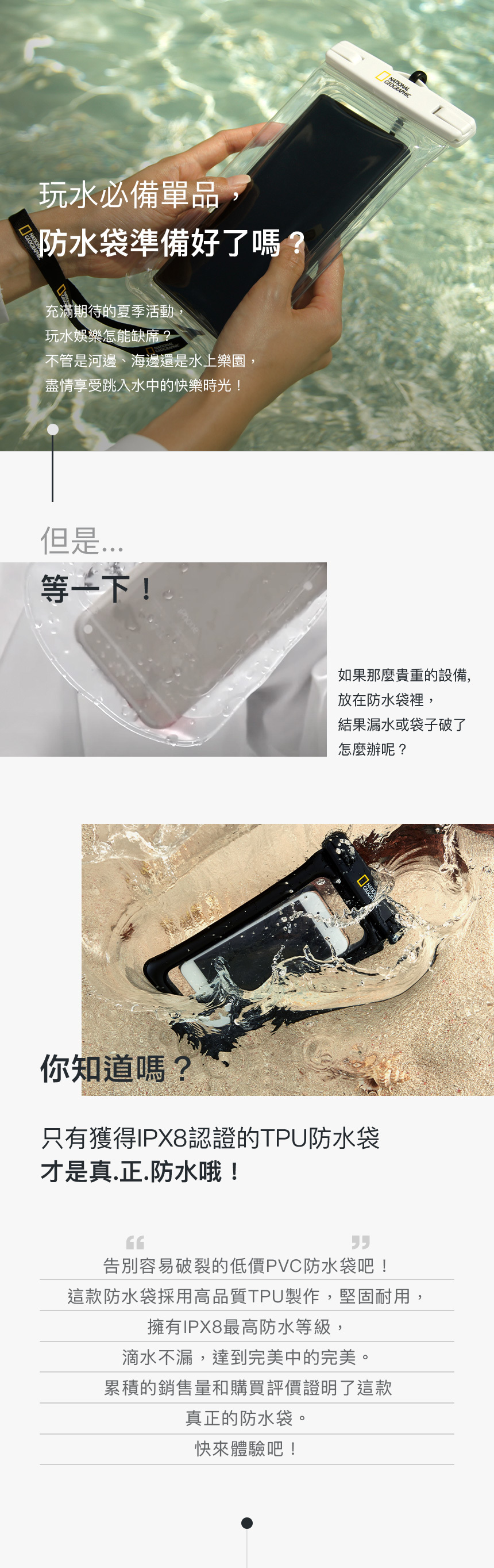 • SGS IPX8 防水最高等級,深度防水不爆裂