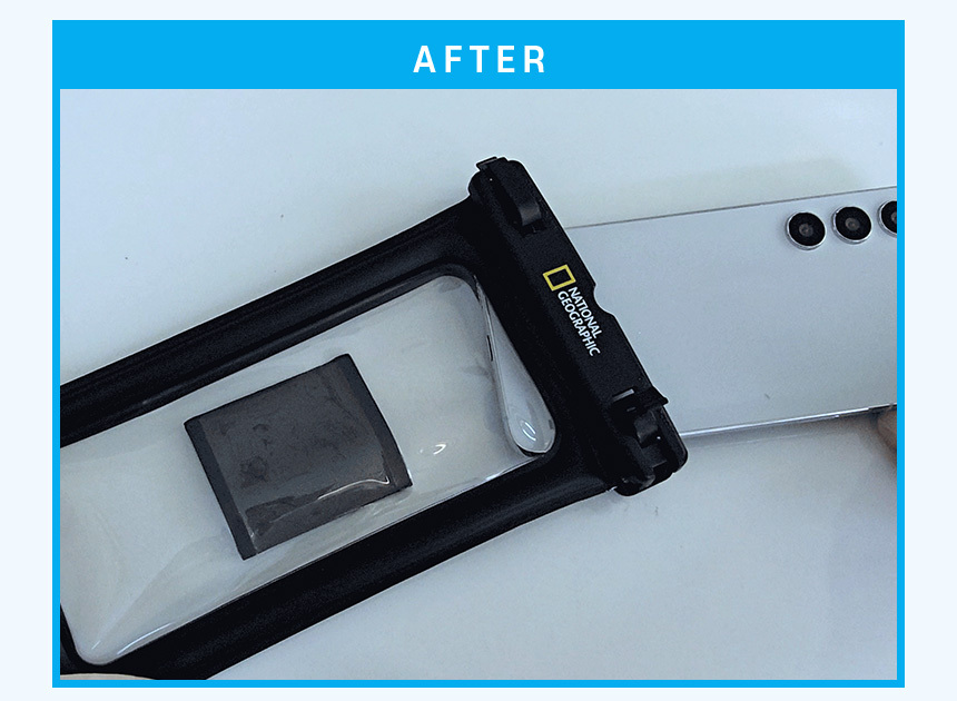 因此防水袋的透明面上會有霧霧的水痕,使用酒精擦掉即可 !