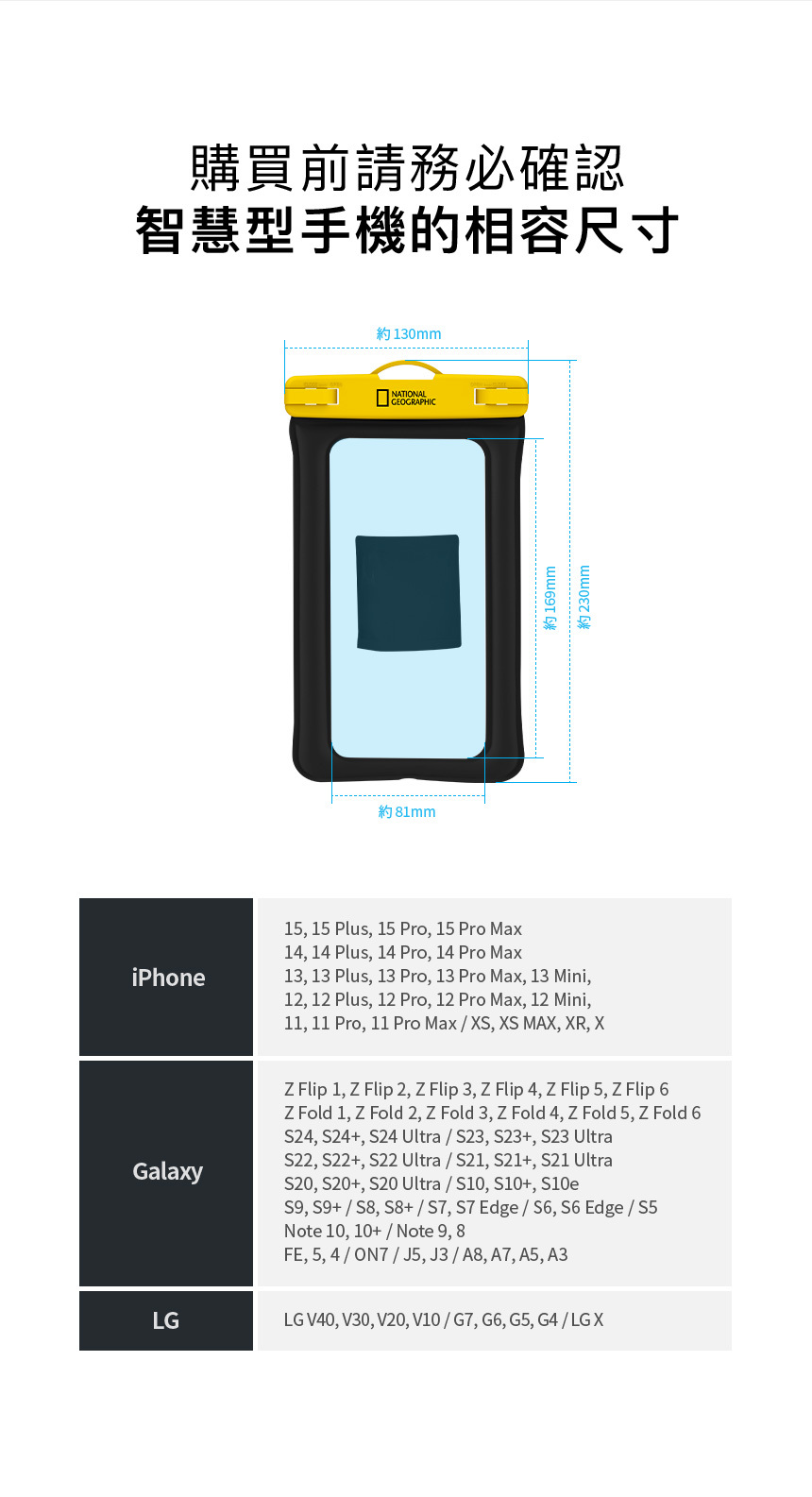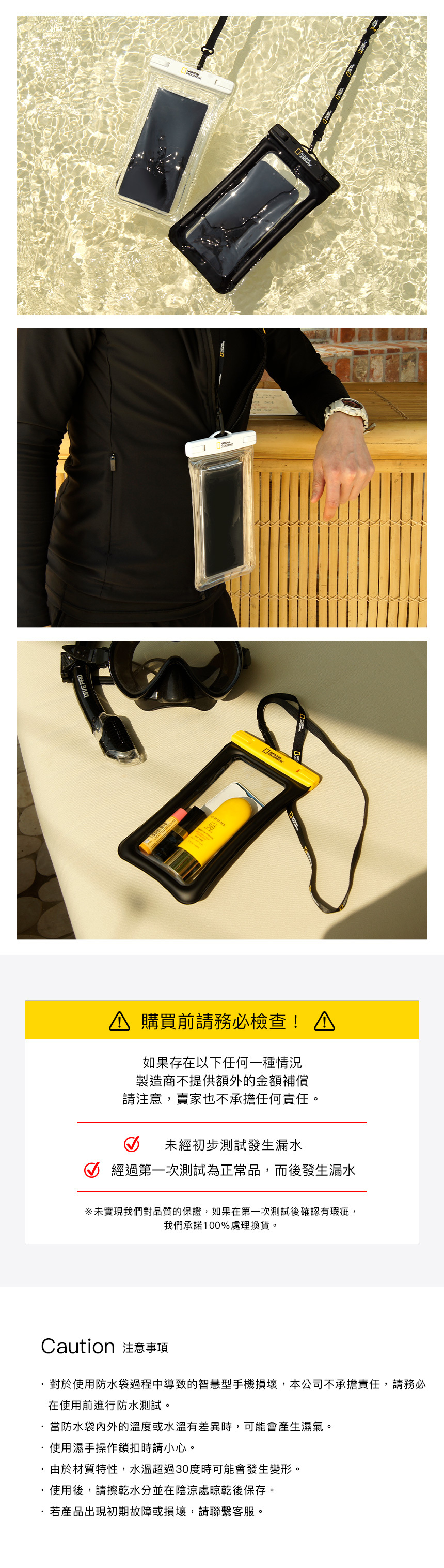 • 全透明的手機袋,可直接觸控螢幕操作或拍攝錄影
